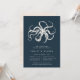 Our coastal chic rehearsal dinner invitations feature a vintage etched style octopus illustration in creamy off white on a navy blue background. Personalise with your wedding ceremony rehearsal and dinner celebration details beneath.