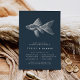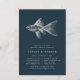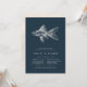 Our coastal chic rehearsal dinner invitations feature a vintage etched style fish illustration in creamy off white on a navy blue background. Personalise with your wedding ceremony rehearsal and dinner or celebration details beneath.