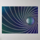 Silver spirals spin through the ocean depths and converge behind a smooth blue, purple, and green gem.