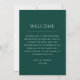 This elegant personalized wedding timeline card in deep teal green (also known as dark forest teal) is the perfect choice for couples planning a fall wedding or a celebration with a forest inspired or evening theme. The deep, rich tones of dark forest teal create a sophisticated, romantic atmosphere, perfect for intimate weddings surrounded by nature. Whether you’re hosting a woodland celebration or a cozy autumn evening wedding, this color adds warmth and depth to your decor. On one side, the timeline card beautifully outlines the key moments of your day - everything from the wedding ceremony to the cake cutting and dance time - keeping your guests informed while maintaining a stylish look. The dark forest teal background adds a subtle yet striking elegance, complementing any rustic or woodland setting. On the reverse side, the welcome card offers a heartfelt message to your guests. Available as both a printed card and a digital download.