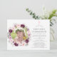 Violet, blush pink and deep velvet boho floral hand painted watercolor first holy communion invitation customisable to your specifics. A square shaped photo is recommended.