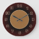 An atmospheric clock in deep velvety red with a gold centre. Modern Numerals in light gold, highlights this impressive design . Available in round and square shapes.