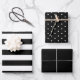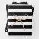 This set of wrapping paper sheets features a solid deepest black coloured sheet with coordinating sheets of wide deepest black stripes on white, and white polka dots on deepest black.