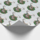 Deer and Christmas Wreath In Snowflakes Wrapping Paper