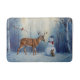 Deer and Happy Snowman Winter Holiday Scene Bath Mat
