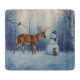 Deer and Happy Snowman Winter Holiday Scene Cutting Board