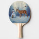 Deer and Happy Snowman Winter Holiday Scene Ping Pong Paddle