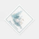 Christmas themed paper napkins with a thin blue border around the edge and beautiful watercolor graphics of a white deer and pine trees. Custom text, on the bottom, can be personalised to read what you want.