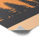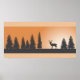 Matte poster with a rustic scene of a deer and pine trees in silhouette.