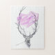 Deer and pink geometric heart drawing Animal art Jigsaw Puzzle