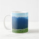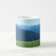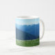 A view of the Olympic Mountain Range, with a few deer in a meadow.