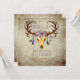 Rustic southwestern wedding invitation with feather and jewel draped deer skull on a rustic vintage background. This beautiful and rustic ornate deer antler deer skull wedding invitation is easily customised for your event by simply adding your details in the font style and colour and wording of your choice.