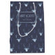 This gift bag features a trendy pattern of deer head silhouettes with curving antlers, stylised arrows and tiny snowflakes in a textured-effect in shades of sky blue and slate on a navy blue background. Optional 'Happy Holidays' text and a label have been provided to add your name and/or other text. Search ID861 thru ID864 to see additional colour options and other products in this modern, Christmas design set.