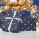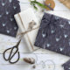 This wrapping paper features a trendy pattern of deer head silhouettes with curving antlers, stylised arrows and tiny snowflakes in a textured-effect in shades of sky blue and slate on a navy blue background. Search ID861 thru ID864 to see additional colour options and other products in this modern, Christmas design set.