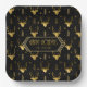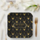 This paper plate features a trendy pattern of deer head silhouettes with curving antlers, stylized arrows and tiny snowflakes with a textured-effect in shades of gold on a black background Optional 'Happy Holidays' text and a label have been provided to add your name and/or other text. Search ID861 thru ID864 to see additional color options and other products in this modern, Christmas design set.