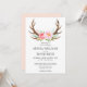 Deer Antlers Boho Floral Watercolor Pink Wedding Invitation