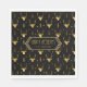 This paper napkin features a trendy pattern of deer head silhouettes with curving antlers, stylized arrows and tiny snowflakes with a textured-effect in shades of gold on a black background Optional 'Happy Holidays' text and a label have been provided to add your name and/or other text. Search ID861 thru ID864 to see additional color options and other products in this modern, Christmas design set.