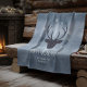Deer Antlers Silhouette & Snowflakes Blue ID861 Fleece Blanket