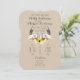A wedding invitation featuring an illustration of a pair of deer antlers decorated with "Mr. & Mrs." banner, daisies, and black eyed Susans. Personalise the text.