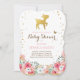 ♥ A cute and fun baby shower invite for a Baby shower with a Deer theme. With flowers. Pink and gold colours for a girl baby shower.