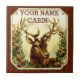 This rustic country tile coaster is perfect for adding a personalised touch to your cabin, lodge or home that features nature / animal decor. It shows a vintage image of a buck deer / reindeer with large antlers, recolored to add brightness and clarity, nestled between pine tree boughs. The background is made to look like a slightly-torn paper attached to a wood grain. Add your name to the top to customise. The word "cabin" can also be changed. See the matching set in our store under "Bar Sets / Matching Home Sets." These are perfect for an old west / rustic American look.