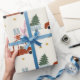 Wrap all your presents in this cute wrapping paper! This wrapping paper pattern features a holiday illustration of a deer driving a car, pulling a Christmas tree trailer.