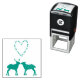 This awesome self inking stamp features a male and female deer that look like a couple in love. The male deer (buck) is dark brown and has large antlers, the female deer (doe) is paler brown with white spots. There is a heart above the deer made of white daisy flowers and yellow buttercups.