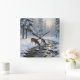 The perfect design for nature lovers or hunters. This dreamy winter design depicts a buck and a doe deer drinking from a snow covered brook with a heard of deer in the background. The evergreens are snowcovered as snow gently falls.