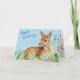 On the front of this pretty Easter card is a watercolor image of an adorable deer fawn nestled among daisies and wildflowers. The fawn gazes at two butterflies flitting around, and the stylised text says 'Happy Easter". The inside of the card has text fields for your own message and signature, plus another springtime image of a bird and its nest. All the text may be easily customised or personalised.