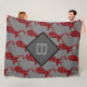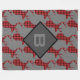 Soft cozy blanket designed with customizable grey background and patterned with trendy red and black buffalo plaid deer head silhouettes.  Big monochromatic grey monogram on the center.  Makes a great gift idea for a husband or boyfriend.