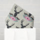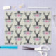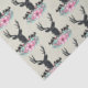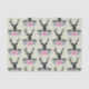 Patterned tissue paper with a black deer head with large antlers. Geometric lines inside the face of the deer adds a creative touch. Colourful pink flowers and mint