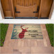 Deer Head with Antlers on Wood Planks with Leaves Doormat