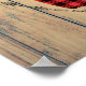 A poster with a rustic style. Designed with a deer head with antlers, made of red plaid. A fancy oval frame surrounds the image. An image of wood planks for the background give it an outdoorsy country feel.