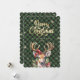 Deer Holly Red Berries Snowflakes Green Christmas Holiday Card