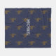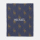 Hunting themed fleece blanket with place for his name in the centre.  Dark blue colour with tan buck images that make a pattern over blankets that come in three sizes.