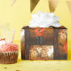Buck deer in autumn woods with rifle dressed in hunter orange and camouflage pants