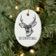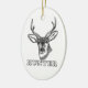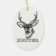 Christmas ornament of a beautiful black and white illustration of a deer with the word Hunter printed underneath. Perfect gift for deer hunters and nature lovers.