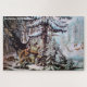 Large puzzle with a reprint of a vintage lithograph, called "Deer Shooting - "On The Shattagee" showing a hunting scene from the 1800s with a deerskin clad frontiersman working for his food by hunting deer in the deep snow of winter. This is a good puzzle for a man that is a hunter.