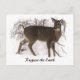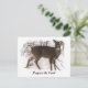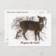 This Earth Day post card features a delicate brown white-tailed deer moving through the snowy winter woods. She has stopped and turned her head because she heard a noise. Her big ears are alert. The face has white markings around the eyes and nose. The text reads: Respect the Earth. It can be customised to suit your needs.