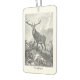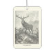 Beautiful black and white vintage illustration of deer in the high mountains. A male deer with antlers is followed by two other deer on the side of a mountain with mountains in the distance. Personalise with your name or message in black font.