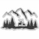 Deer and Doe in the wilderness with mountains, trees silhouettes vinyl sticker, decal. Bumper stickers, Decals and Car Magnets. Ideal for laptops, phones, tablets, binders, notebooks, journals, lockers, water bottles, and more! Sticker, decal.