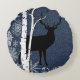 Deer in Winter Birch Forest Round Pillow
