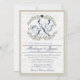 Sketched look deer in a wreath of foliage with heart and monogram wedding invitation in navy blue. Rustic country birch and burlap inspirations for your woodland or barn wedding event.