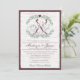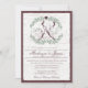 Sketched look deer in a wreath of foliage with heart and monogram wedding invitation in sage and earthy wine tones. Rustic country birch and burlap inspirations for your woodland or barn wedding event.