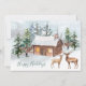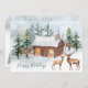 Celebrate the season with these elegant holiday party invitations.This design depicts a watercolor illustration of winter woodland scene - the fir trees, log-cabin and two deer. You can adjust text according to your requirement