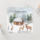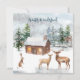 Celebrate the season with these elegant holiday party invitations.This design depicts a watercolor illustration of winter woodland scene - the fir trees, log-cabin, two deer and hare. You can adjust text according to your requirement