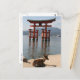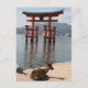 Postcard of the Itsukushima Shrine, Miyajima, Japan with deer in foreground.