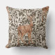 Hand-drawn deer on damask pattern with oak branches and leaves