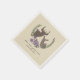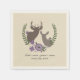 Paper napkins featuring an illustration of a buck and doe inside a purple floral wreath. Personalise the text. Look for matching invitations and other coordinating items at Jill's Paperie.