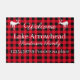 Deer wildlife decor | Red and Black Buffaloe Check Plaid.White doormat with your lake's name, your family's name, and address